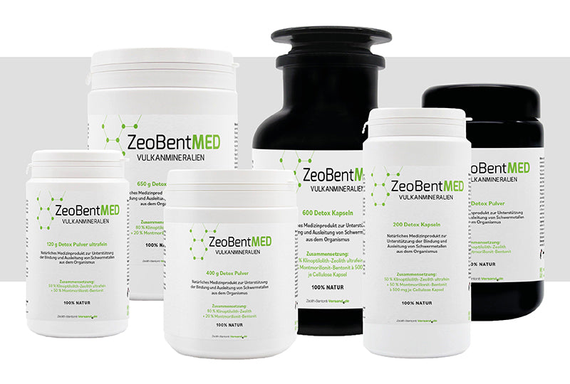 Diese Mischung aus Klinoptilolith-Zeolith und Montmorillonit-Bentonit vereint in sich die besonderen schadstoffbindenden Eigenschaften dieser beiden siliziumhaltigen Naturmineralien. Gemeinsam können diese beiden natürlichen CE-zertifizierten Medizinprodukte bei der Ausleitung schädlicher Substanzen unterstützen und so einen wertvollen Beitrag zum Schutz Ihrer Gesundheit leisten. Unsere ZeoBentMED-Produkte, die in laborgeprüfter Qualität erhältlich sind, gibt es in Form von Pulver, ultrafeinem Pulver und Kapseln. Diese Produkte werden in Dosen und Violettgläsern angeboten.