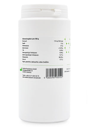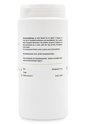 - eine pflanzliche Kapselhülle enthält ca. 700mg Flohsamenschalenpulver fein gemahlen