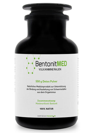 BentonitMED è un prodotto naturale con certificazione CE di qualità farmaceutica a base del minerale argilloso montmorillonite bentonite, che può legare varie sostanze nocive sulla sua superficie e negli spazi tra gli strati ed è quindi adatto alla disintossicazione. È indigeribile, insolubile in acqua e rigonfiabile e, a differenza di ZeolithMED, forma un sottile film protettivo di gel di montmorillonite quando viene somministrato per via orale. BentonitMED è quindi particolarmente adatto per disintossicare le mucose sensibili del tratto digestivo.